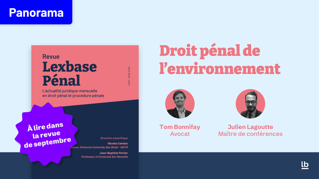 Nous sommes heureux d’annoncer la parution, chez Lexbase Pénal, du premier panorama de droit pénal de l’environnement (mars 2023 – août 2025), co-rédigé par Tom Bonnifay, avocat pénaliste au Cabinet Vouland Avocats, et Julien Lagoutte, maître de conférences HDR à l’Université de Bordeaux (Institut de sciences criminelles et de la justice, UR 4633).